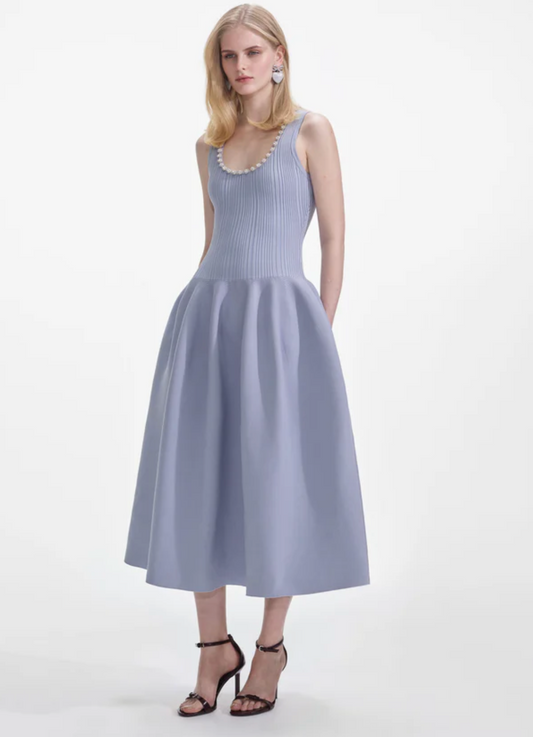 BLUE RIBBED KNIT DIAMANTE MIDI