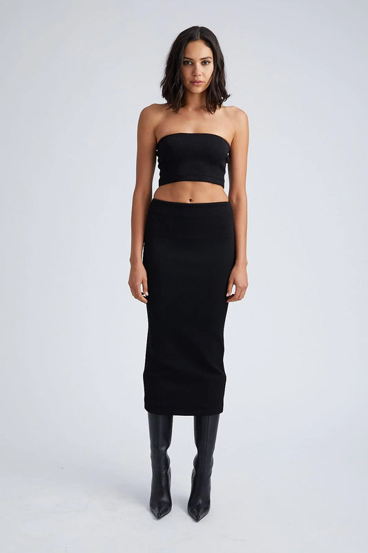 BLACK STRETCH JACQUARD TUBE SKIRT