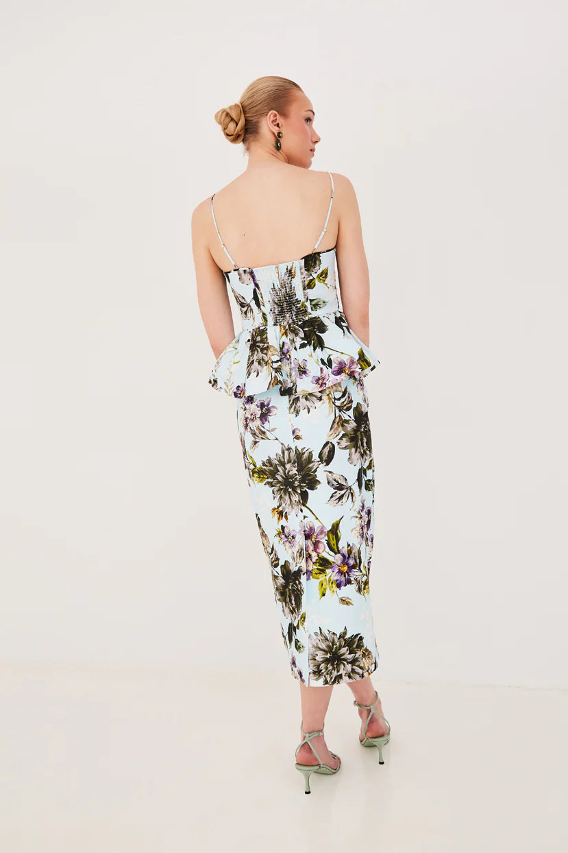 • Bodice and peplum skirt are lined in self fabric