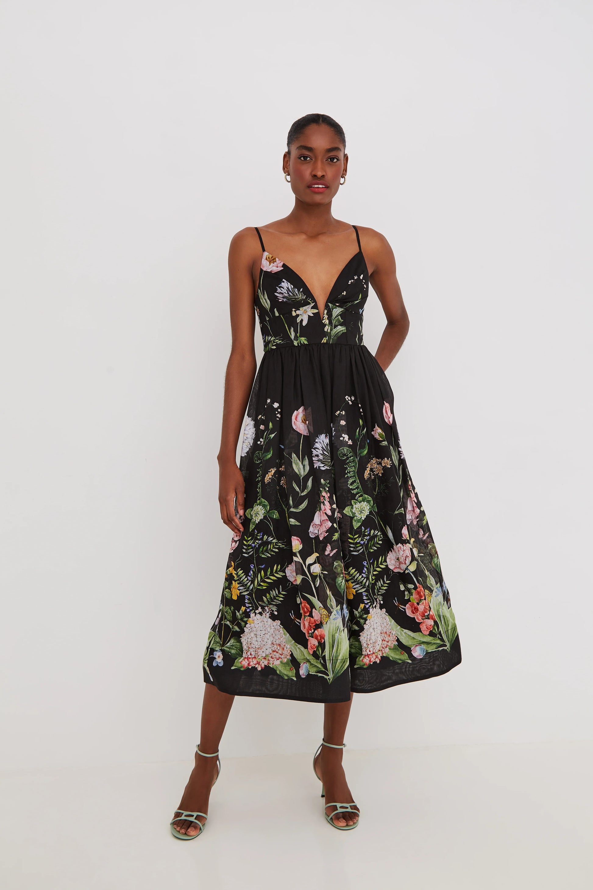• Sleeveless fit-and-flare midi dress with plunging v-shaped neckline